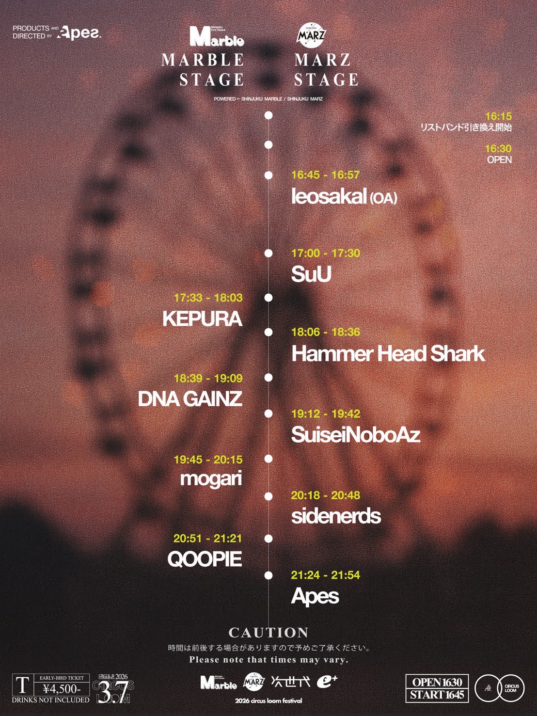 Apes presents『circus loom festival 2026』 *新宿Marble 17:33-18:03